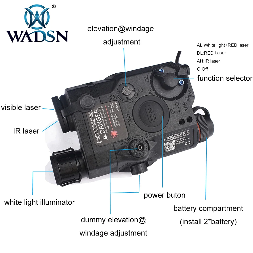 WADSN Airsoft LA-5 PEQ 15 Red Dot Lazer IR Laser LED Tactical Flashlight UHP Appearance Softair LA