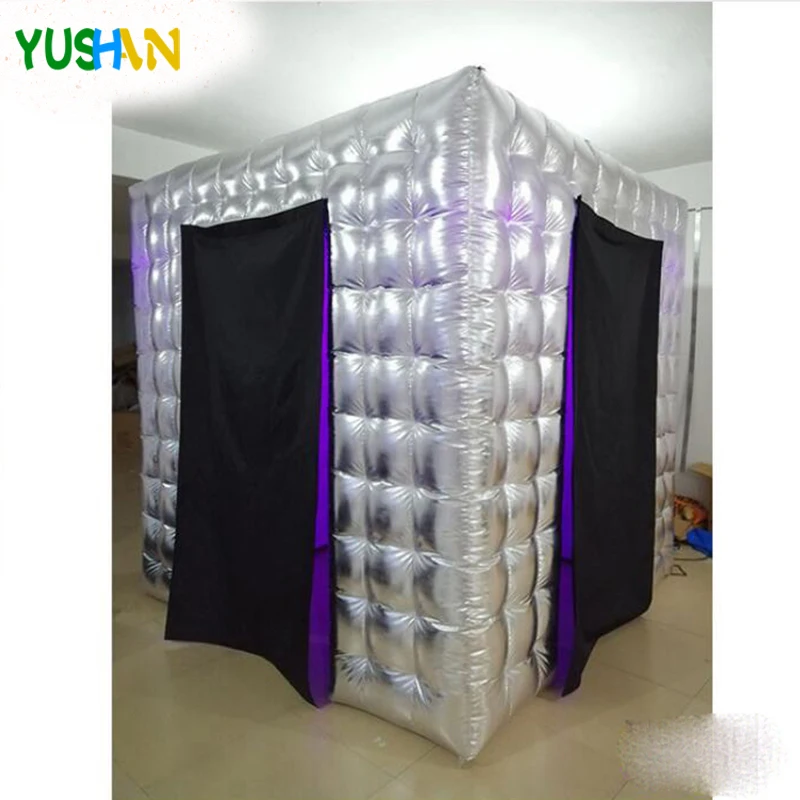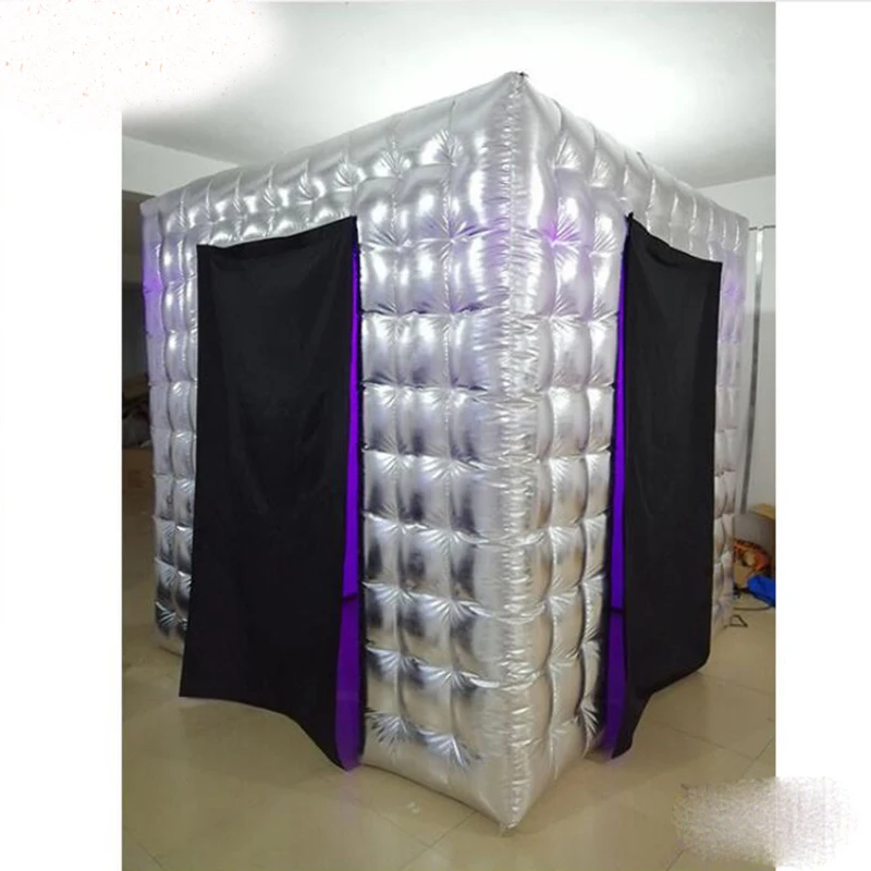 HOT SALE 2.5m Cube silver with black curtain photo booth backdrops with LED bulbs lights Portable Tent cabin